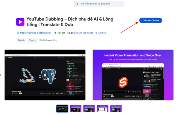 Bước 1: Bạn kích vào “Youtube Dubbing” để tải tiện ích. Tiện ích có thể hoạt động trên cả Chrome và Microsoft Edge
