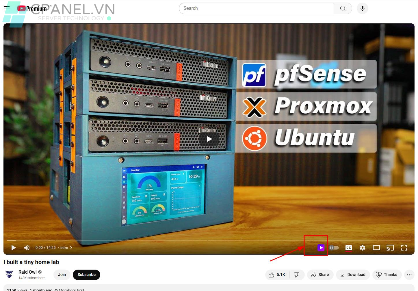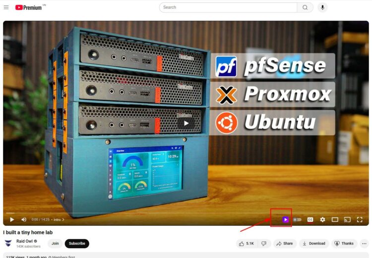 Sau khi cài đặt xong, bạn mở một video Youtube mất kỳ, trên thanh cộng cụ của Youtube bạn sẽ thấy biểu tượng nút Play màu đỏ như hình
